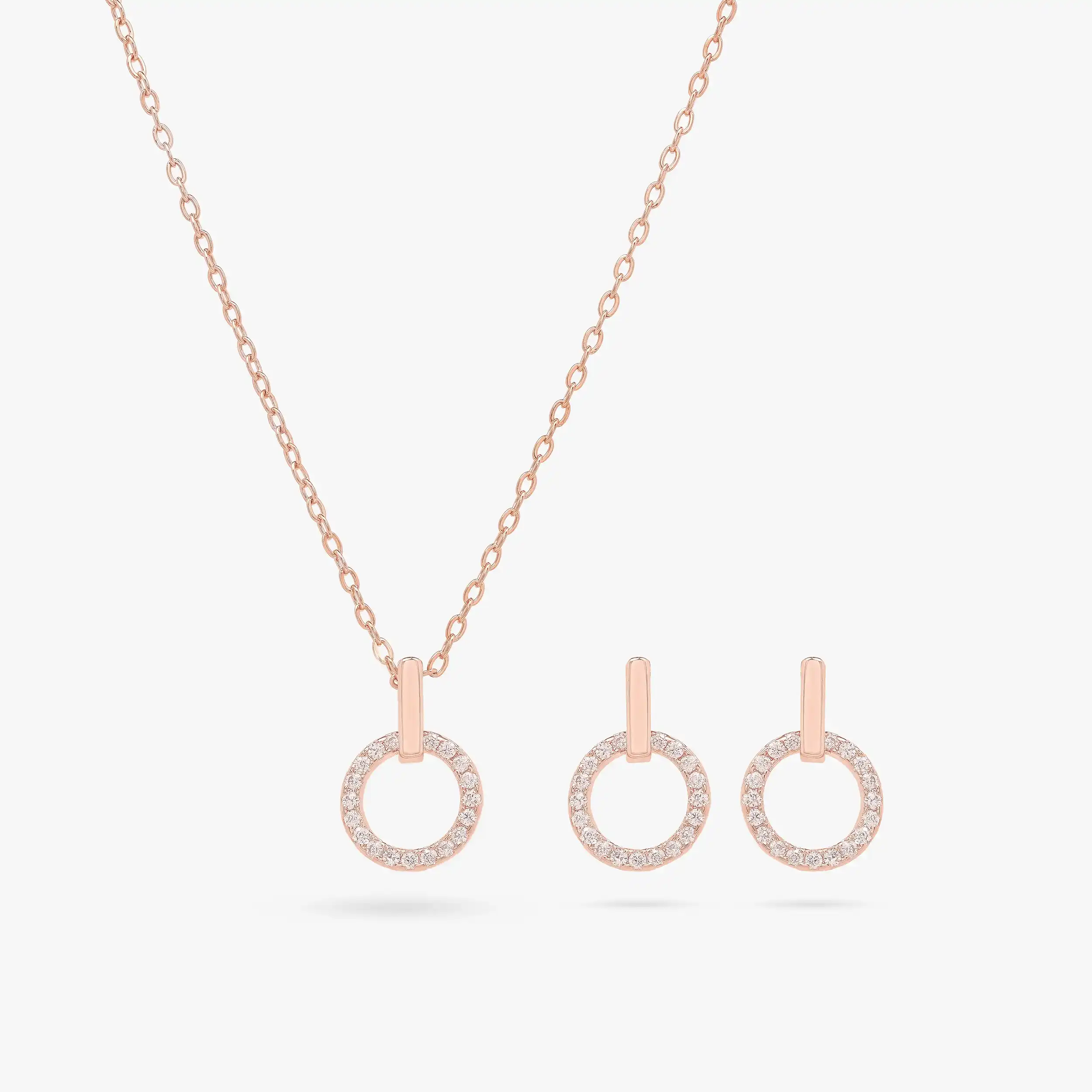 Celebrate the infinite nature of love with the Circle of Love , a refined and elegant jewelry ensemble that symbolizes the endless bond between two hearts. Featuring a circular design adorned with sparkling diamonds, this set includes a necklace and matching earrings, making it a perfect expression of devotion and affection.